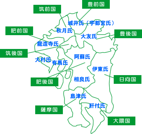 この頃の九州は豊後の大友宗麟(おおともそうりん)肥前の龍造寺隆信(りゅうぞうじたかのぶ)薩摩の島津義久の三大勢力が支配領域を広げるための戦いを繰り広げていました。
