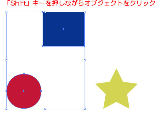 複数のオブジェクトを選択したいときは、「Shift」キーを押しながらオブジェクトをクリックします。