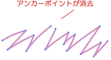 ドラッグした始点と終点の間にあるアンカーポイントとセグメント(アンカーポイントとアンカーポイントの間)がすべて消えます。